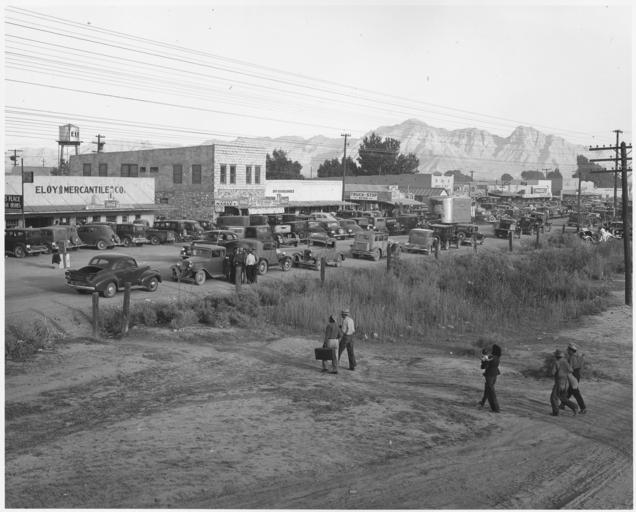 | Keywords: Eloy, Pinal County, Arizona. Some cotton pickers ride the freights. Arriving in Eloy on Saturday aft . . . - NARA - 522514.jpg Scope and content Full caption reads as follows Eloy Pinal County Arizona Some cotton pickers ride the freights Arriving in Eloy on Saturday afternoon during cotton harvest General notes 522514 Local identifier 83-G-44345 Department of Agriculture Bureau of Agricultural Economics Division of Economic Information ca 1922 - ca 1953 NARA-Author Lange Dorothea 1895-1965 Photographer 1372774 <br /> Still Picture Records Section Special Media Archives Services Division NWCS-S National Archives at College Park 8601 Adelphi Road College Park MD 20740-6001 11/1940 Record group Record Group 83 Records of the Bureau of Agricultural Economics 1876 - 1959 Record group ARC 412 Photographic Prints Documenting Programs and Activities of the Bureau of Agricultural Economics and Predecessor Agencies compiled ca 1922 - ca 1947 documenting the period ca 1911 - ca 1947 Series ARC 521048 File unit File unit ARC Variant control numbers NAIL Control Number NWDNS-83-G-44345 Other versions <gallery> File Eloy _Pinal_County _Arizona _Some_cotton_pickers_ride_the_freights _Arriving_in_Eloy_on_Saturday_aft_ _ _ _-_NARA_-_522514 tif tif File Eloy _Pinal_County _Arizona _Some_cotton_pickers_ride_the_freights _Arriving_in_Eloy_on_Saturday_aft_ _ _ _-_NARA_-_522514 jpg jpg </gallery> NARA-cooperation PD-USGov Dorothea Lange Eloy Arizona |