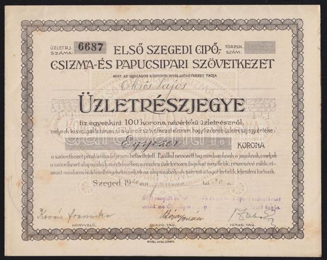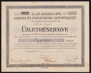 Keywords: Első szegedi cipő-csizmadia és papucsipari szövetkezet üzletrészjegye.jpg hu Első szegedi cipő-csizmadia és papucsipari szövetkezet üzletrészjegye http //darabanth hu/images/3/8/385276 jpg Author 1920 Economy of Szeged 1920 in Hungary History of Szeged PD-old |