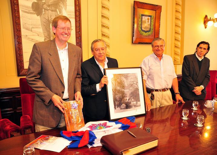 Keywords: david nelson davidnelson paysandú uruguay embajador usa embajadorusa paylana azucitrus cítricos usembassymvd bertil bentos bertilbentos ciudad de paysandú ciudaddepaysandú chajá groupshot people indoor El embajador David Nelson y el Intendente Bertil Bentos intercambiaron obsequios en la sede municipal. El martes 7 de diciembre de 2010, el embajador de estados Unidos en Uruguay, David Nelson, realizó una visita de cortesía al departamento de Paysandú, culminando de esta forma las visitas a toda la región litoral del país. David Nelson arribó al aeropuerto internacional de Paysandú, acompañado por el Asesor de Asuntos Económicos de la embajada, Kevin Skillin y personal de la oficina de Cooperación de Defensa del gobierno estadounidense. Allí, fueron recibidos por el Intendente Bertil Bentos y autoridades de las fuerzas armadas uruguayas, para dar inicio a la agenda de actividades. [U.S. Embassy photo by Pablo Castro / Copyright info] El embajador David Nelson y el Intendente Bertil Bentos intercambiaron obsequios en la sede municipal. El martes 7 de diciembre de 2010, el embajador de estados Unidos en Uruguay, David Nelson, realizó una visita de cortesía al departamento de Paysandú, culminando de esta forma las visitas a toda la región litoral del país. David Nelson arribó al aeropuerto internacional de Paysandú, acompañado por el Asesor de Asuntos Económicos de la embajada, Kevin Skillin y personal de la oficina de Cooperación de Defensa del gobierno estadounidense. Allí, fueron recibidos por el Intendente Bertil Bentos y autoridades de las fuerzas armadas uruguayas, para dar inicio a la agenda de actividades. [U.S. Embassy photo by Pablo Castro / Copyright info] |