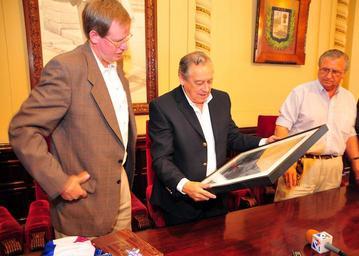 Keywords: david nelson davidnelson paysandú uruguay embajador usa embajadorusa paylana azucitrus cítricos usembassymvd bertil bentos bertilbentos ciudad de paysandú ciudaddepaysandú chajá people indoor El Embajador David Nelson entrega un obsequio al Intendente Bertil Bentos. El martes 7 de diciembre de 2010, el embajador de estados Unidos en Uruguay, David Nelson, realizó una visita de cortesía al departamento de Paysandú, culminando de esta forma las visitas a toda la región litoral del país. David Nelson arribó al aeropuerto internacional de Paysandú, acompañado por el Asesor de Asuntos Económicos de la embajada, Kevin Skillin y personal de la oficina de Cooperación de Defensa del gobierno estadounidense. Allí, fueron recibidos por el Intendente Bertil Bentos y autoridades de las fuerzas armadas uruguayas, para dar inicio a la agenda de actividades. [U.S. Embassy photo by Pablo Castro / Copyright info] El Embajador David Nelson entrega un obsequio al Intendente Bertil Bentos. El martes 7 de diciembre de 2010, el embajador de estados Unidos en Uruguay, David Nelson, realizó una visita de cortesía al departamento de Paysandú, culminando de esta forma las visitas a toda la región litoral del país. David Nelson arribó al aeropuerto internacional de Paysandú, acompañado por el Asesor de Asuntos Económicos de la embajada, Kevin Skillin y personal de la oficina de Cooperación de Defensa del gobierno estadounidense. Allí, fueron recibidos por el Intendente Bertil Bentos y autoridades de las fuerzas armadas uruguayas, para dar inicio a la agenda de actividades. [U.S. Embassy photo by Pablo Castro / Copyright info] |