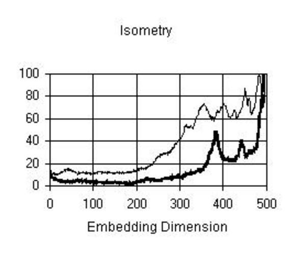 | Keywords: Embedding plot for g=4.62 r=1.JPG Embedding plot with embedding dimensions 1 497 of the series generated with the process equation with gain 4 62 initial condition of 0 4 and 500 data points Radius used for calculating isometries is 1 5000 random comparisons were done for each embedding dimension for series and its shuffled copy 2006-02-06 own assumed Lakinekaki~commonswiki Logistics | ||||