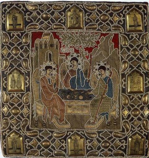 Keywords: Embroidery by Kseniya Godunova 01.jpg Пок ов на г обницу Се гия Радонежского с изоб ажением Т оицы абота п иписываемая ца евне Ксении Годуновой scan from аясова А Лите ату ный об аз Ксении Годуновой и п иписываемые ей п оизведения шитья / Отв ед Д С Лихачев // Т уды Отдела д евне усской лите ату ы Академия наук СССР Институт усской лите ату ы Пушкинский Дом ; Л аука 1966 Т 22 Взаимодействие лите ату ы и изоб азительного искусства в Д евней Руси С 294 311 before 1622 Ksenia Godunova 1582-1622 PD-Art Ksenia Godunova Sergius of Radonezh in embroidery Embroidery in Museum of Sergiev Posad 17th-century Russian orthodox embroidery Files uploaded by Shakko from various sources Old Testament Trinity Pelena Embroidery of Russian tsarinas and Grand Duchess |