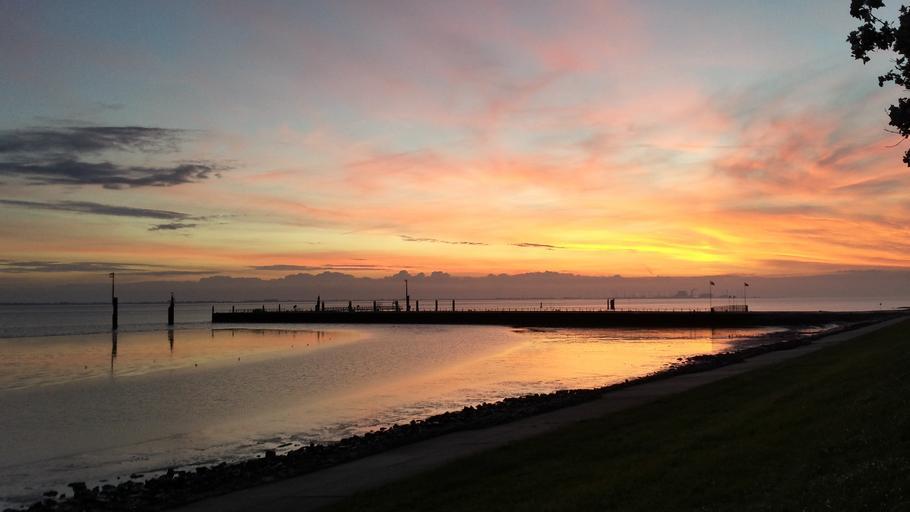 Keywords: emden coast holland sunset horizon coastal landscape north sea loneliness summer sea sky holiday beach lake