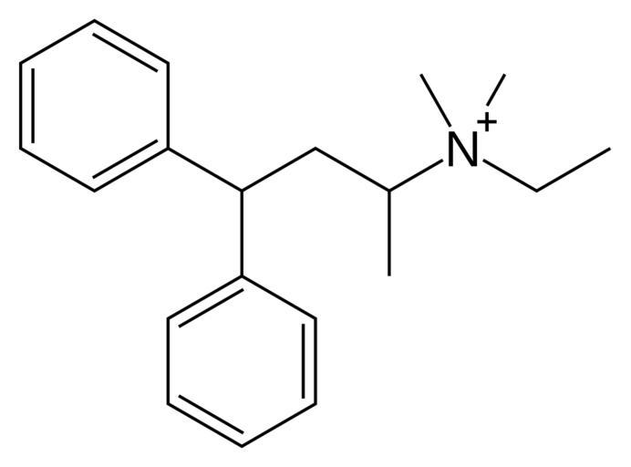 Keywords: Emepronium.svg Skeletal formula of emepronium Created using http //www acdlabs com/download/chemsk html ACD/ChemSketch 10 0 and Inkscape Own 2007-08-15 Fvasconcellos 01 49 16 August 2007 UTC Muscarinic antagonists Quaternary ammonium ions Diphenylmethanes |