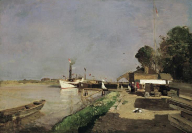 | Keywords: Emil Jakob Schindler, Die Dampfschiffstation an der Donau gegenüber Kaisermühlen.jpg Die Dampfschiffstation an der Donau gegenüber Kaisermühlen oil canvas 55 x 78 5 cm Wien Belvedere source c 1871-72 Creator Emil Jakob Schindler Other versions steamships in art Paintings of the Danube Emil Jakob Schindler 1870s oil on canvas paintings PD-old-100 | ||||