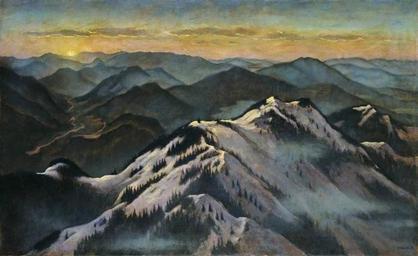 Keywords: Emil Orlik Sonnenaufgang vom Wendelstein 1917.jpg Sonnenaufgang vom Wendelstein Öl auf Leinwand 110 x 180 cm Unten rechts signiert und datiert ORLIK 17 Auf der Stützleiste des Keilrahmens in Schwarz links betitelt und rechts in Versalien signiert und bezeichnet Sonnenaufgang vom WENDELSTEIN Prof Emil Orlik Kunstg Museum Berlin Auf dem Keilrahmen oben ein Etikett der Münchner Secession Provenienz Ehemals Sammlung Antonín Dolezal Prag 1944 von den Nationalsozialisten beschlagnahmt 1950 von der tschechoslowakischen Regierung verstaatlicht und 2010 an die Erben restituiert http //www villa-grisebach de Villa Grisebach Auktionen 1917 Creator Emil Orlik PD-old-auto 1932 Images from Villa Grisebach Auktionen Emil Orlik Wendelstein mountain Mangfallgebirge Paintings of sunrises 1917 paintings Paintings of the German Alps 1910s landscape paintings