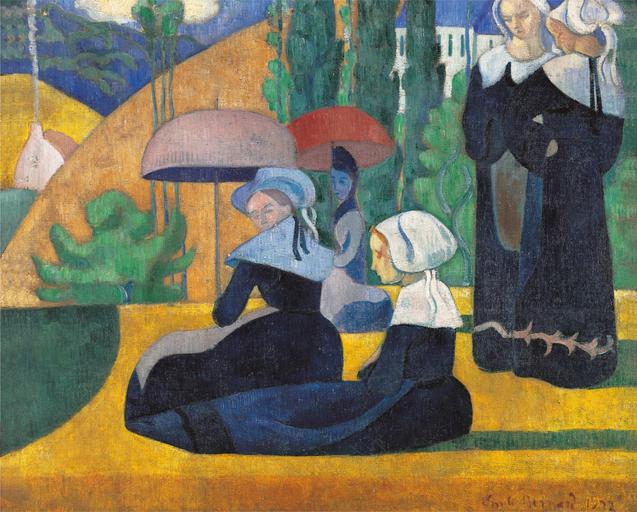 | Keywords: Émile Bernard - Les Bretonnes aux ombrelles (1892).jpg Artwork Q17493601 Creator Émile Bernard 1892 oil canvas cm 81 105 Institution Musée d'Orsay http //www musee-orsay fr/en/collections/index-of-works/notice html no_cache 1 zsz 5 lnum 4 Musee d'Orsay Paris object history exhibition history credit line Emile Bernard 1892 ~ lr signature / date DENIS on BERNARD artworks in 1943 « Adresse du pinceau Il avait dès ses débuts le sens de la composition et il a toujours su bien remplir sa surface Son dessin est resté ce qu ™il était décoratif inventé stylisé Il a changé de manière mais il a toujours été un maniériste » DENIS Journal 1943 accession number RF 1977 41 AM 3373 38918 PD-old-auto-1923 1941 DEFAULTSORT Bernard Emile; Breton Women with umbrellas 1892; Musee d'Orsay Les Bretonnes aux ombrelles |