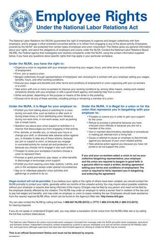 Keywords: Employee Rights Notice NLRB.jpg en Notice of employee rights under the National Labor Relations Act http //www nlrb gov/poster National Labor Relations Board 2011-09 National Labor Relations Board Posters PD-USGov