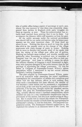 | Keywords: Encouragements and Warnings p22.JPG en Speech of National Civil Service Reform League president Carl Schurz before its annual meeting of December 10 1896 in Philadelphia p 15 Single page scan 200 dpi Carl Schurz Encouragements and Warnings National Civil Service Reform League 1896; courtesy of Boston Public Library Carl Schurz 1896-12-10 PD-Old Encouragements and Warnings Page Images | ||||
