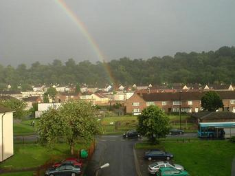 Keywords: End of the Rainbow in Lawrence Weston, Bristol.jpg en End of the Rainbow in Lawrence Weston Bristol Photograph by Stephen Burns Stephen Burns 2007-07-04 51 29 44 47 N 2 40 22 74 W heading 155 Avonmouth Bristol ward Rainbows in England