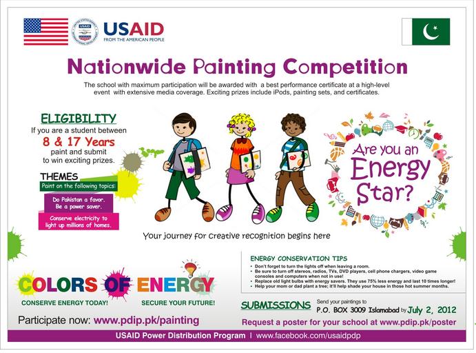 Keywords: English ad - Colors of Energy.jpg en Islamabad June 8 2012 Homes and schools are among the largest consumers of electricity in Pakistan and if children are engaged and involved in nationwide energy conservation it would result in the reduction of https //en wikipedia org/wiki/Rolling_blackout load shedding and uninterrupted electricity to consumers http //wikioo org/artist php name Claude+Monet Claude Monet Energy consumption in everyday life results in https //en wikipedia org/wiki/Environmental_degradation environmental degradation and load shedding since energy is produced from fuel which is culled from coal oil and https //en wikipedia org/wiki/Natural_gas natural gas These non-renewable sources of energy millions of years in the making will eventually dry up if not conserved 2012-06-12 https //www flickr com/photos/usaid_pakistan/7179686805/ USAID Pakistan other versions PD-USGov United States Agency for International Development