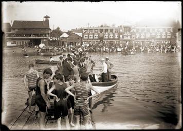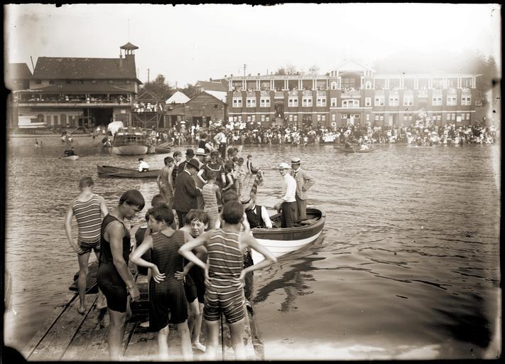 | Keywords: monochrome photo border English Bay swimming race Date: 190- VPL 5454 Philip Timms photograph Content: People on the beach and in boats. First Beach Pavilion (taller building, left), the Crescent (lower building, left) and another bathhouse (built in 1905), right with Simpson's rental boat house in between. Boys and men line a platform in the water, foreground. Topic: Boats and boating Swimming More information on our historical photograph collection: www.vpl.ca/historicalphotos English Bay swimming race Date: 190- VPL 5454 Philip Timms photograph Content: People on the beach and in boats. First Beach Pavilion (taller building, left), the Crescent (lower building, left) and another bathhouse (built in 1905), right with Simpson's rental boat house in between. Boys and men line a platform in the water, foreground. Topic: Boats and boating Swimming More information on our historical photograph collection: www.vpl.ca/historicalphotos  |