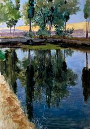 Keywords: Enrique Simonet - Chopos.jpg Artwork Creator Enrique Simonet 1918-1923 oil canvas cm 62 44 object history credit line inscription E Simonet signature bottom left ~ accession number Source PD-old-auto 1927 Enrique Simonet Paintings from Spain Reflections in rivers Water reflections in art |