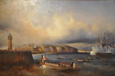 | Keywords: Entrée du roi Louis-Philippe dans le port de Dieppe, by Auguste Jugelet.jpg en King Louis-Philippe coming in port of Dieppe France Normandy fr Entrée du roi Louis-Philippe dans le port de Dieppe Seine-Maritime le 11 août 1840 2half otherdate century 19 Oil on canvas cm 100 5 154 5 Institution Château-Musée de Dieppe 07120001242 own Philippe Alès 2011-09-30 other versions PD-old-100 self cc-by-sa-3 0 Auguste Jugelet Paintings in Château de Dieppe Paintings of Louis-Philippe of France 19th-century paintings not categorised by year 19th-century history paintings 19th-century oil on canvas paintings in France Cliffs in Normandy in art Dieppe in paintings Paintings of lighthouses Paintings of ports and harbours Uploaded with UploadWizard |