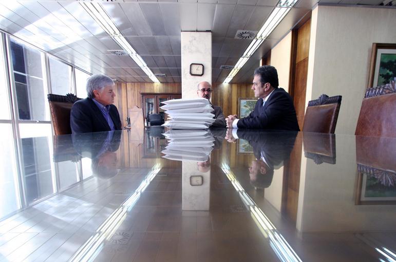 Keywords: Presidente da Alep, deputado Valdir Rossoni (PSDB), o presidente do Tribunal de Contas do Paraná (TCE) conselheiro Fernando Guimarães e o 1º secretário da Alep, deputado Plauto Miró (DEM) Foto: Nani Gois (crédito obrigatório)