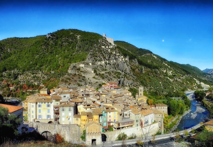 Keywords: entrevaux france landscape town buildings architecture mountain outside river hdr nature trees