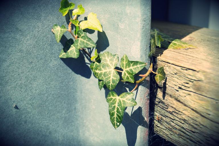 Keywords: entwine ivy leaves climber wood metal grow light shadow sunlight