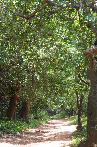 Keywords: environment trees forest nature flying leaves greens botanical garden path eventide wood branch trunk old tree landscape bissau guinea
