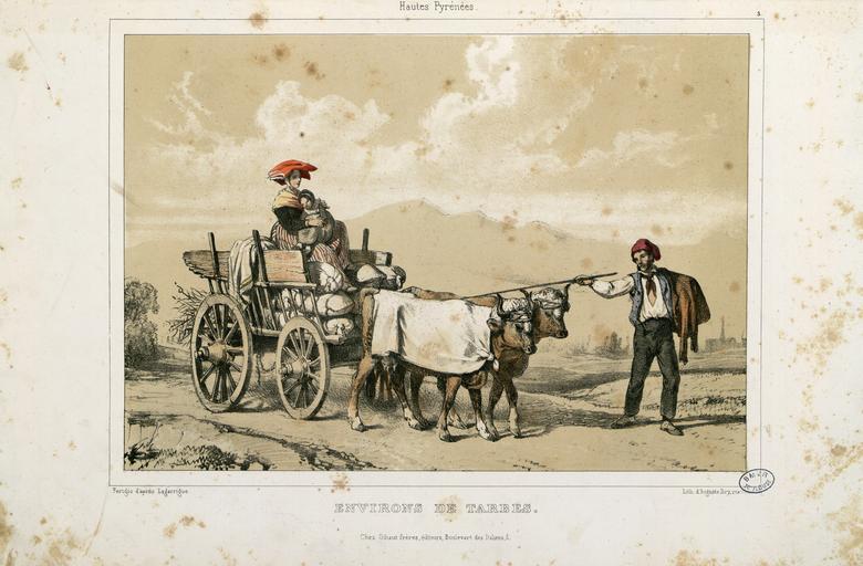 Keywords: Environs de Tarbes (Hautes Pyrénées) - Fonds Ancely - B315556101 A FEROGIO 005.jpg Lithographies en couleurs réalisées par Auguste Bry numérotées de 1 à 12 avec indication de la localisation géographique en haut Titre lithographié illustré - Certains exemplaires comprennent 1 à 2 planches supplémentaires Pièces jointes entre les pl 9 et 10 sont encartés 3 f de notes manuscrites concernant la pl 10 représentant des rouliers d'Ossun ou beuraires dont les voitures transportent toutes sortes de marchandises Cartonnage d'éditeur percaline noire titre doré Ancely René 1876 - 1966 Possesseur fre public domain domaine public B315556101_A_FEROGIO_005 jpg image/jpeg 1 f de pl lith en coul ; 38 5 cm Lagarrigue Illustrateur Gihaut frères Imprimeur Bry Auguste Lithographe http //numerique bibliotheque toulouse fr/collect/general/index/assoc//ark /74899/B315556101_A_FEROGIO_005 dir/B315556101_A_FEROGIO_005 jpg Bibliothèque municipale de Toulouse A-FEROGIO 3 Creator François-Fortuné-Antoine Ferogio http //catalogues toulouse fr/web2/tramp2 exe/do_keyword_search/log_in setting_key BMT1 servers 1home query p000401 vignette http //numerique bibliotheque toulouse fr/collect/general/index/assoc//ark /74899/B315556101_A_FEROGIO_005 dir/B315556101_A_FEROGIO_005_thumb jpeg 1841 Environs de Tarbes Hautes Pyrénées B315556101_A_FEROGIO_005 colour print - lithography - print - colors - color lithograph Women in art Bags Peasants in art Caps in art François-Fortuné-Antoine Ferogio Horse-drawn vehicles Chariots in prints French national costumes Oxen Hiking equipment Children in art Agriculture in Hautes-Pyrénées Mountains in art National costumes in art Roads in art People of Tarbes Men in art Couples in art Scarves in art People with tuques in art Bodices |