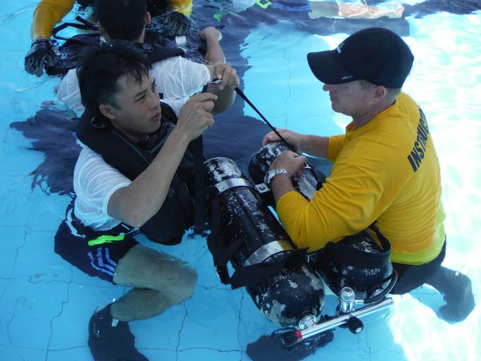 Keywords: EODMU-5 trains Vietnamese divers. (14805515160).jpg NHA TRANG Vietnam Aug 18 2014 Command Master Chief Stephen J Mulholland provides in water instruction on SCUBA procedures to a Vietnamese People's Navy dive student during pool confidence evolutions Naval Diving and Salvage Training Center is supporting Explosive Ordnance Disposal Mobile Unit EODMU 5 for humanitarian mine action in Vietnam during the first overseas Mobile Training Team in more than 9 years US Navy photo by Chief Warrant Officer 3 J Dennis Kypros/Released 140818-N-ZZ999-002 Join the conversation http //www navy mil/viewGallery asp www navy mil/viewGallery asp http //www facebook com/USNavy www facebook com/USNavy http //www twitter com/USNavy www twitter com/USNavy http //navylive dodlive mil navylive dodlive mil http //pinterest com pinterest com https //plus google com plus google com https //www flickr com/photos/usnavy/14805515160/ EODMU-5 trains Vietnamese divers 2014-08-14 21 18 https //www flickr com/people/56594044 N06 Official U S Navy Page from United States of America PD-USNavy Official U S Navy Imagery https //flickr com/photos/56594044 N06/14805515160 2016-12-14 00 52 29 United States Government Work Military training Files from the U S Navy Flickr stream Files uploaded by Reguyla United States Navy |