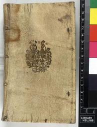 Keywords: Epistole - Upper cover (c68b4).jpg Style Armorial; Caption Upper cover; Colour White / cream; Edge Unspecified exhibition history Decorative Technique Tooled in black Tooled in blind Tooled in alloy frequently gold and silver zwischen gold ; Cover Material Parchment may include vellum May be tooled in oxidised silver or gold Traces of 2 pairs of ties For same arms see C68h7 object history Text 1620; Venice; Fugger-Kirchberg object type Cc-zero place of creation Binding Germany place of discovery Unspecified British Library image http //www bl uk/catalogues/bookbindings/LargeImage aspx RecordId 020-000008814 ImageId ImageId 44012 Copyright BL Epistole Uploaded with GWToolset Epistole - Upper cover c68b4 http //www webarchive org uk/bldatasets/bindings/9472_4 jpg Bookbinding 17th-century bookbinding British Library Bookbindings |