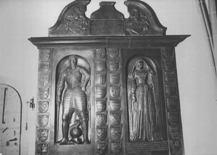 Keywords: Epitaph.JPG Binsfeld Nörvenich Epitaph own work papa1234 2004-03-17 2006-11-15 own assumed Papa1234 St Gertrud Binsfeld Wall mounted church monuments in North Rhine-Westphalia Reliefs of coats of arms in North Rhine-Westphalia