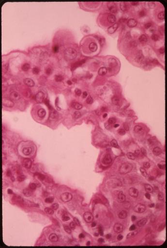 | Keywords: EPITHELIUM (GILL COVERING) OF A CHANNEL CATFISH DAMAGED BY EXPOSURE TO METHYL MERCURIC CHLORIDE IN THE WATER. CAMERA... - NARA - 551615.jpg Scope and content General notes 551615 Local identifier 412-DA-9130 Environmental Protection Agency 12/02/1970 - NARA-Author Emmerich Donald Photographer 3045077 <br /> Duluth Saint Louis county Minnesota United States North and Central America inhabited place 4201404 46 783 -92 1 <br /> Still Picture Records Section Special Media Archives Services Division NWCS-S National Archives at College Park 8601 Adelphi Road College Park MD 20740-6001 06/1973 Record group Record Group 412 Records of the Environmental Protection Agency 1944 - 2006 Record group ARC 708 DOCUMERICA The Environmental Protection Agency's Program to Photographically Document Subjects of Environmental Concern compiled 1972 - 1977 Series ARC 542493 File unit File unit ARC Variant control numbers Agency-Assigned Identifier 153/10/009130<br /> NAIL Control Number NWDNS-412-DA-9130 Other versions <gallery> File EPITHELIUM_ GILL_COVERING _OF_A_CHANNEL_CATFISH_DAMAGED_BY_EXPOSURE_TO_METHYL_MERCURIC_CHLORIDE_IN_THE_WATER _CAMERA _-_NARA_-_551615 tif tif File EPITHELIUM_ GILL_COVERING _OF_A_CHANNEL_CATFISH_DAMAGED_BY_EXPOSURE_TO_METHYL_MERCURIC_CHLORIDE_IN_THE_WATER _CAMERA _-_NARA_-_551615 jpg jpg </gallery> NARA-cooperation PD-USGov Epithelium Siluriformes Microscopes Water quality |