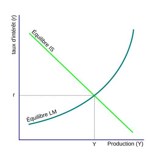 Keywords: Équilibre IS-LM.svg équilibre IS/LM - légende en français IS/LM equilibrium - legend in French 2006-04-10 own assumed Gribeco SVG economics IS-LM model diagrams