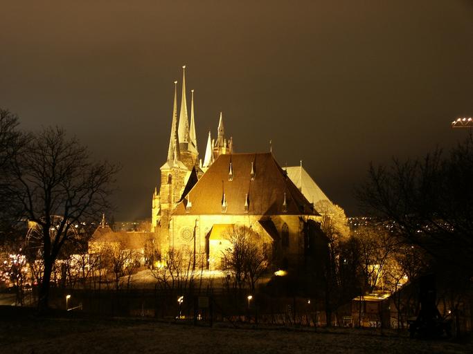 Keywords: erfurt dom architecture church illuminated severikirche thuringia germany achitecture cathedral square