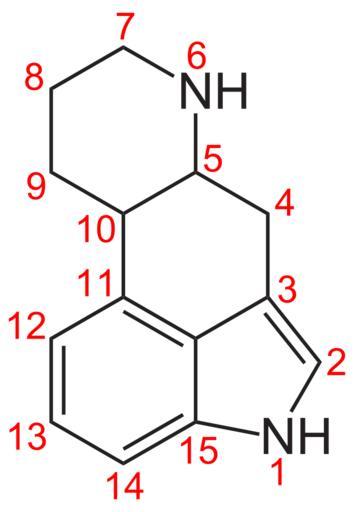 Keywords: Ergolin num.svg Struktur von Ergolin nummeriert Structure of ergoline numbered own 2007-04-07 NEUROtiker Own work all rights released Public domain de einfach nummeriert nummeriert und Ringe beschriftet<br />en plain numbered numbered and rings labelled Ergoline