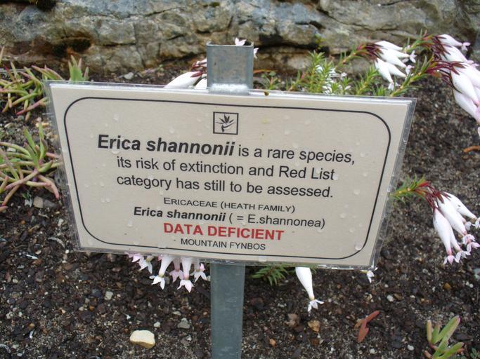 Keywords: Erica shannonii sign.JPG Erica shannonii sign Kirstenbosch Gardens Cape Town Own 2007-12 Andrew massyn Erica shannonii