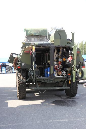 | Keywords: Erikoissammutusyksikkö SM 15 4.JPG  en Erikoissammutusyksikkö SM 15 special fire engine used by Finnish military Specially designed for combating fires in ammunition dumps or other explosive areas built on Pasi armoured personnel carrier Equipped with 8 5 meter long grip arm capacity 100 kg with a camera 12x zoom both day/night use halogen light and Rosenbauer RM8E water cannon Self-protection water cannon Rosenbauer RM8E 1000 l/min/10 bar with a range of 42 meters and 270 degree traverse Impulse Fire Extinguishing System IFEX with 2 x 12 l/25 bar range 60 meters initial velocity 120 m/s Inside the vehicle is a hydraulic water pump Esteri D-16/19 1600 l/min/10 bar 1500 l water tank remote operating system and the controls for pump water cannons and the grip arm Attached to Finnish Navy Archipelago Sea Naval Command military fire department fi Suomen puolustusvoimien käytössä oleva erikoissammutusyksikkö SM 15 Pasi-miehistönkuljetusajoneuvon rakenteelle tehty erityisesti ammusvarikkojen ja muiden räjähtävien kohteiden sammutukseen suunniteltu sammutusajoneuvo Autossa on 8 5 metrin pituinen nostokouralla 100 kg kameralla 12x zoom sekä yö- että päiväkäyttö halogeenivalolla ja Rosenbauer RM8E vesitykillä varustettu käsivarsi Omasuoja-vesitykkinä on Rosenbauer RM8E 1000 l/min/10 bar kantama 42 metriä kääntösäde 270 astetta IFEX-mikroimpulssisammutin 2 x 12 l/25 bar kantama 60 metriä lähtönopeus 120 m/s Vaunun sisällä on hydraulinen palopumppu Esteri D-16/19 1600 l/min/10 bar 1500 litran vesisäiliö kaukokäyttöyksikkö sekä palopumpun vesitykkien käsivarren ja nostokouran ohjaus Vaunu kuuluu Saaristomeren meripuolustusalueen sotilaspalokuntaan own MKFI 2011-07-09 Finnish Navy anniversary 2011 Erikoissammutusyksikkö SISU/Patria XA-series in Finnish service Taken with Canon EOS 60D Taken with Canon EF-S 15-85mm F3 5-5 6 IS USM Rear views of armored fighting vehicles Files by User MKFI |