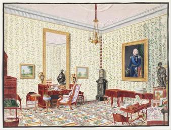 Keywords: Ernst Christian Anton von Lautzow - The Study of Grand Duchess Cecilia von Oldenberg - Google Art Project.jpg Ernst 6837486 Christian Anton von Lautzow /collection/cooper-hewitt-national-design-museum/artwork/the-study-of-grand-duchess-cecilia-von-oldenberg-ernst-christian-anton-von-lautzow/6844302/ 229918 Ernst Christian Anton von Lautzow /artist/ernst-christian-anton-von-lautzow/12690851/ 12690851 /collection/cooper-hewitt-national-design-museum/ Cooper-Hewitt National Design Museum 3644669 http //www cooperhewitt org/ 3/12/2012 5 37 31 PM /collection/cooper-hewitt-national-design-museum/artwork/the-study-of-grand-duchess-cecilia-von-oldenberg-ernst-christian-anton-von-lautzow/6844302/ 1839 1839 Brush and watercolor and gouache with accents of gold paint on white wove paper Eugene V Thaw Collection; Galerie Biedermann Munich 6844302 False 1839 3/25/2012 1 42 06 PM 2007-27-21 http //collection cooperhewitt org/view/objects/asitem/id/229918 Thaw Collection Drawing 1830 1840 1839 False 1 31619537275064 Object the-study-of-grand-duchess-cecilia-von-oldenberg-ernst-christian-anton-von-lautzow The Study of Grand Duchess Cecilia von Oldenberg s Gail S Davidson et al House Proud Nineteenth-century Watercolor Interiors from the Thaw Collection New York Cooper-Hewitt National Design Museum Smithsonian Institution 2008 63-64 fig 53; 92 pl 21 Charlotte Gere An Album of Nineteenth-Century Interiors Watercolors from Two Private Collections New York The Frick Collection 1992 54-55 Illus Charlotte Gere Nineteenth-Century Decoration New York Harry N Abrams Inc 1989 185 Illus Frame H x W x D 39 7 x 50 2 x 2 5 cm 15 5/8 x 19 3/4 x 1 in Sheet 27 5 x 35 5 cm 10 13/16 x 14 in New York NY Cooper-Hewitt National Design Museum Smithsonian Institution House Proud Nineteenth-Century Watercolor Interiors from the Thaw Collection August 12 2008-January 25 2009 New York NY The Pierpont Morgan Library From Romanticism to Realism German Drawings in the Pierpont Morgan Library 1998 Oneonta NY Hartwick College 18th and 19th Century Watercolors of European Domestic Interiors 1987 No 21 On reverse Arbeitszimmer der Grosshergogin C von Oldenberg gemalt von word erased 1839 Brush and watercolor and gouache with accents of gold paint on white wove paper White wove paper Eugene V Thaw Collection; Galerie Biedermann Munich Lower right E von Lautzow special url_id mgFiStV4SGJp4g PD-old-70 Google Art Project works by Ernst Christian Anton von Lautzow Watercolors of building interiors in the Cooper “Hewitt Smithsonian Design Museum Google Art Project works in Cooper-Hewitt Smithsonian Design Museum 1830s interiors in art Ernst Christian Anton von Lautzow Cecilia of Sweden Grand Duchess of Oldenburg |