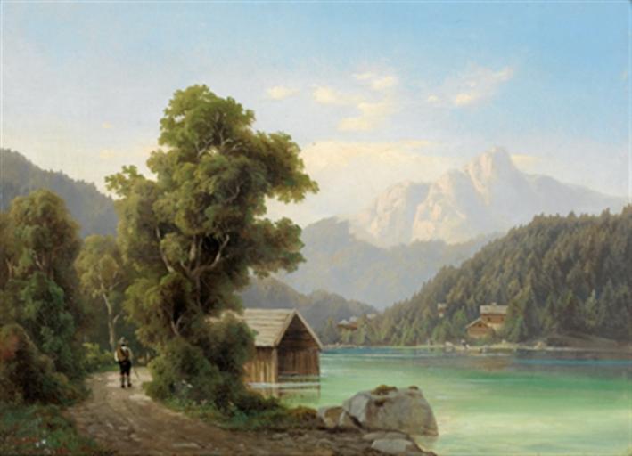 | Keywords: Ernst Gustav Doerell - Motiv aus dem Salzkammergut.jpg Artwork Creator Ernst Gustav Doerell Motiv aus dem Salzkammergut century 19 oil canvas cm 43 5 59 http //www artnet de/Artists/LotDetailPage aspx lot_id 35E7BEE90D488469AF61E8AC07CD3139 Artnet Other versions PD-old-100 Ernst Gustav Doerell Salzkammergut Landscape paintings of Austria 19th-century mountain paintings | ||||