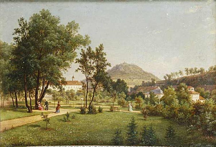 | Keywords: Ernst Gustav Doerell - A View of the Doubravka from the Teplice Chateau Park 009.jpg  Pohled na Doubravku ze zámeckého parku v Teplicích A View of the Doubravka from the Teplice Chateau Park Oil canvas cardboard cm 18 5 16 5 http //www dorotheum cz/jpgs/kat310508/big/009 jpg Dorotheum Praha 1874 Creator Ernst Gustav Doerell PD-old as author died more than 70 years ago Other versions PD-old-100 Ernst Gustav Doerell Paintings of castles in the Czech Republic Doubravská hora 1870s landscape paintings 1874 paintings Images from Dorotheum |