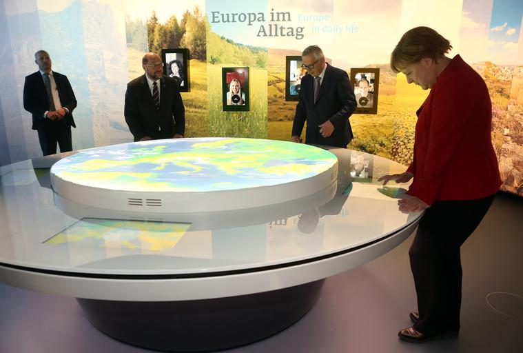 | Keywords: berlin germany indoor BERLIN, GERMANY - MAY 12: (2nd L to R) Martin Schulz, president of the European Union Parliament, European Commission President Jean-Claude Juncker, and German Chancellor Angela Merkel and participate in the re-opening of the European House and in the inauguration of "Europa Experience The Exhibition" in the European House Berlin. BERLIN, GERMANY - MAY 12: (2nd L to R) Martin Schulz, president of the European Union Parliament, European Commission President Jean-Claude Juncker, and German Chancellor Angela Merkel and participate in the re-opening of the European House and in the inauguration of "Europa Experience The Exhibition" in the European House Berlin. |