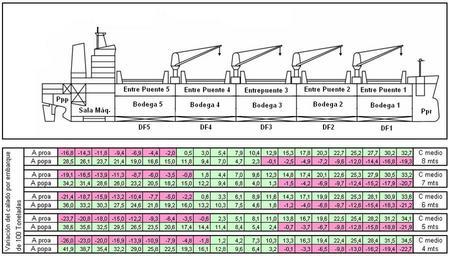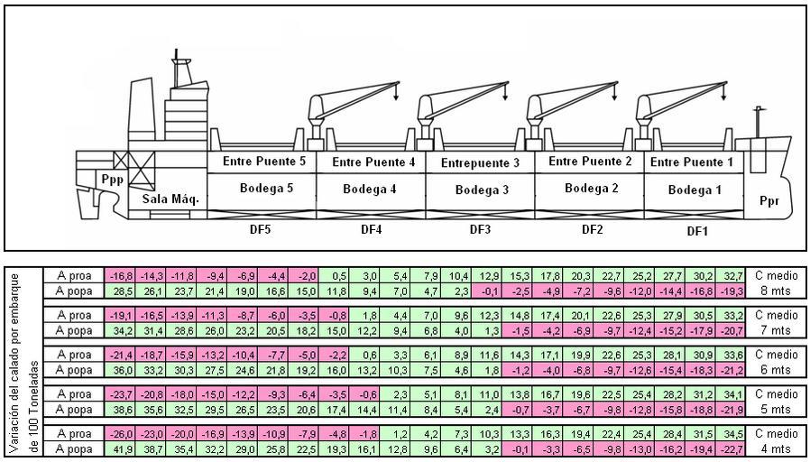 Keywords: EscalaAsiento.PNG ES Escalas de asiento EN Trimming scale Own 2007-08 Claudio Elias Escala de asiento para un buque NN variación del calado en proa y popa para embarque de 100 toneladas Números negativos indican disminución de calado números positivos aumento Naval architecture |