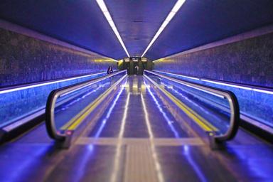 Keywords: escalator moving stairway transport staircase public urban modern illuminated subway metal city handrail elevator reflection