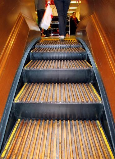 Keywords: escalator shopping wood antique plastic bag department store top stairs stair step gradually mechanically usa automatically nostalgic wood stairs shop upward