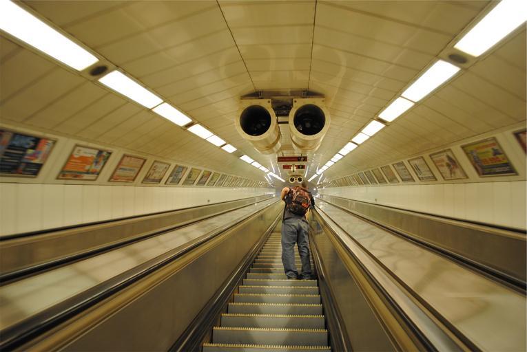 Keywords: escalator subway station guy backpack knapsack