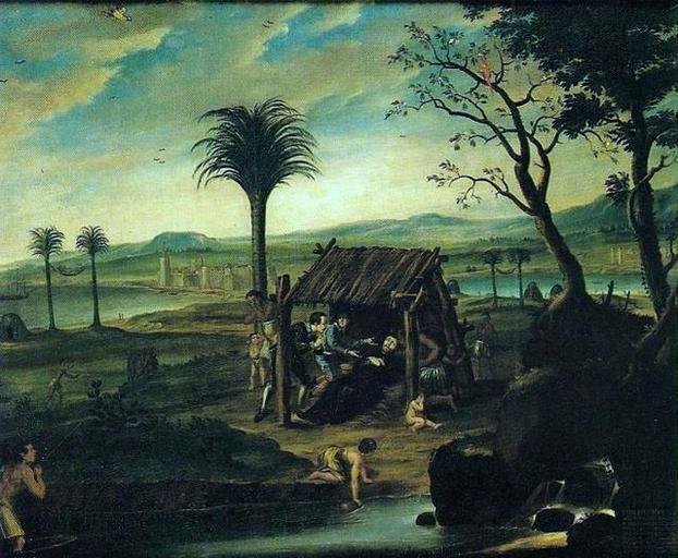| Keywords: Escola Portuguesa - Morte do Padre Filipe Bourel.jpg Unknown painter Portuguese School Autor ignorado Escola Portuguesa Death of Father Filipe Bourel Morte do Padre Filipe Bourel century 18 Oil on canvas cm 110 5 133 3 Institution Museu Nacional de Belas Artes Inscrição em latim Padre Filipe Bourel / nascido nos anos mil e seiscentos Missionário no Brasil / anteriormente ministro no Colégio da Companhia de Jesus /da Bahia / adjacente no mar brasileiro / morre na presença de portugueses / desprovido de toda assistência sacerdotal na missão perto do lago Podi Apodi / não muito longe de Olinda / rio Paraíba / leito / cabana / embarcação de brasileiros Scanned from MNBA catalogue Safra 1985 PD-old-100 Other versions 18th-century paintings in the Museu Nacional de Belas Artes Missionaries from Portugal History of Brazil 1500-1808 Colony Portuguese paintings in the Museu Nacional de Belas Artes Dying in art Pernambuco in art History paintings in the Museu Nacional de Belas Artes Landscape paintings in the Museu Nacional de Belas Artes |