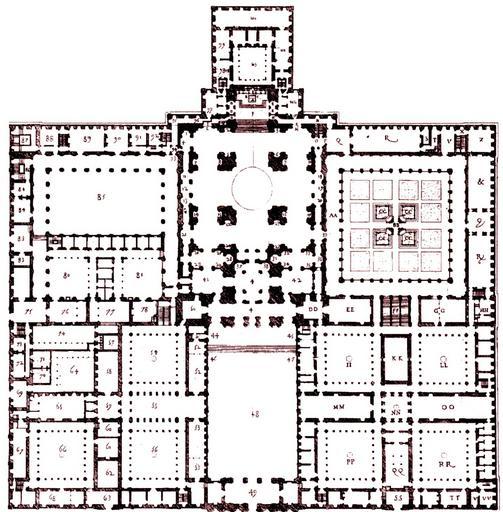 Keywords: Escorial traza def.jpg en Groundplan of the Monastery of San Lorenzo de El Escorial No 48 Courtyard of the Kings es Traza del Monasterio de El Escorial Grabado de Juan Herrera 1591 Escaneo y limpieza de la imagen por Juan Rafael de la Cuadra PD-old-100 DiseƱos de Juan de Herrera y Pedro Perret Floor plans of monasteries Floor plans of Spain |