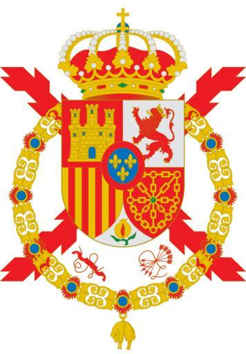 | Keywords: Escudo de armas de Juan Carlos I de España.svg Escudo de Juan Carlos I rey de España según el blasón Las armas del Rey de España están formadas por un escudo cuartelado El primero de gules con un castillo de oro almenado de tres almenas y donjonado de tres torres cada una con tres almenas de lo mismo mazonado de sable y aclarado de azur que es de Castilla; El segundo de plata con un león rampante de gules coronado de oro lampasado y armado de lo mismo que es de León; El tercero de oro con cuatro palos de gules que es de Aragón; El cuarto de gules con una cadena de oro puesta en orla en cruz y en aspa con un punto de sinople en abismo que es de Navarra Entado en punta de plata con una granada al natural rajada de gules sostenida tallada y hojada de dos hojas de sinople que es de Granada En escusón de azur y fileteado de gules tres flores de lis de oro símbolo de la Casa de Borbón Lleva acolada al escudo la Cruz roja de Borgoña símbolo de sus antepasados Borgoñones y Austrias Y a diestra y siniestra de la punta del mismo un yugo de gules en su posición natural con cintas de lo mismo y un haz de cinco flechas de gules con puntas hacia abajo y cintas de lo mismo símbolo de los Reyes Católicos Él todo rodeado del collar de la Orden del Toisón de Oro y rematado de corona del mismo metal y pedrería con ocho florones visibles cinco y ocho perlas intercaladas cerradas con ocho diademas guarnecidas también de perlas y rematadas con una cruz sobre un orbe que es la Real de España Regla número 1 del Título II del Real Decreto 1511/1977 Own 09/01/2009 Miguillen 50px50px 50px insignia Coats of arms of Juan Carlos I of Spain 1 SVG coats of arms of Spain Coats of arms by the Taller de Heráldica y Vexilología in the Spanish Wikipedia España |