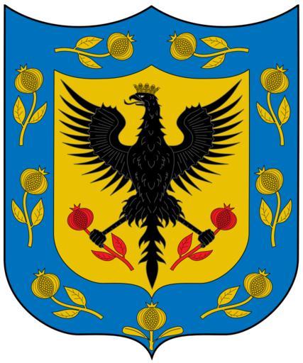 | Keywords: Escudo de Bogotá.svg Escudo de Bogotá Colombia que adopta las armas otorgadas inicialmente al Nuevo Reino de Granada por medio de la Real Cédula dada en Valladolid el 3 de diciembre de 1548 http //www bogotaturismo gov co/ciudad/simbolos/<br/> e por la presente hacemos mereced e queremos e mandamos que agora e aquí en adelante la dicha provincia del dicho Nuevo Reino de Granada e ciudade e villas della hayan e tengan por sus armas conocidas un escudo que en el medio del haya un águila negra rampante entera coronada de oro que en cada mano tenga una granada colorada en campo de oro y por orla unos ramos con granadas de oro en campo azul según va pintado e figurado Own HansenBCN / Shadowxfox 50px 50px Coats of arms of Bogotá Coats of arms by the Taller de Heráldica y Vexilología in the Spanish Wikipedia Bogotá Eagles sable Pomegranates in civic heraldry Bogota Eagles in heraldry of Colombia Bordures azure with charges |