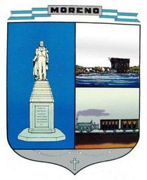 | Keywords: ESCUDO MORENO.jpg es El escudo oficial del Partido de Moreno fue adoptado por medio de la Ordenanza nº 252 del año 1965 La idea de poseer este emblema surgió en ocasión de cumplirse el Centenario de la Creación del Partido 25 de Octubre de 1864 Para ello fue organizado un concurso en el que resultó ganador el presentado por dos vecinos el Sr Saturnino Frías y el artista plástico local Sr Luis Pozzi No se trata de un verdadero escudo heráldico pues no respeta las normas que dicta dicha disciplina Lo mismo ha ocurrido en la mayoría de los escudos provinciales y municipales de todo el país Sin embargo su diseño ha tenido siempre buena aceptación de la gente a nivel local El significado de los elementos que componen los cuatro cuarteles de este escudo es el siguiente a la izquierda la figura de la estatua del Dr Mariano Moreno cuyo nombre lleva nuestro Partido que se encuentra en la plaza principal A la derecha en el cuadro superior se ve una carreta tirada por cuatro bueyes atravesando un río evocando esta imagen al paso del Rey vado natural por medio del cual se cruzaba antiguamente el río En el otro cuadro figura el primer ferrocarril argentino significando que Moreno se fundó con la llegada del ferrocarril a estas tierras El rosario dibujado en el cuartel que ocupa el cuartel inferior o punta del escudo simboliza a la Virgen del Rosario Patrona del pueblo de Moreno 1965 own Luis Pozzi PD-AR-Gov Symbols of partidos of Buenos Aires Province |