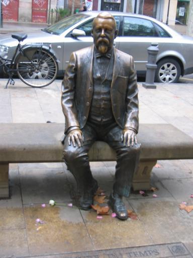 Keywords: Escultura Rovira i Trias.jpg ca Escultura de bronze on hi apareix Antoni Rovira i Trias Està situada a la plaça homònima del districte de Gràcia a Barcelona own Ssola 2008-10-19 GFDL Cc-by-sa-3 0-migrated A Rovira i Trias Joaquim Camps