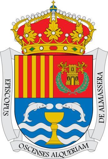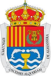 Keywords: Escut d'Almàssera.svg Almàssera Horta Nord «Semipartit i truncat Al primer d'or els quatre pals de gules Al segon de gules castell d'or acompanyat de dues palmes de sinople perfilades de plata i somat d'una torre d'or acompanyada de dos lleons també d'or Al tercer d'atzur el calze d'or acompanyat de dos peixos d'argent portant cadascú en la seua boca la sagrada forma també d'argent i sostingut d'ones d'argent i atzur Al timbre corona reial tancada» http //www boe es/boe/dias/1979/04/16/pdfs/A08780-08780 pdf Real Decret 774/1979 9-III BOE 16 abril 1979 traducció Almácera Horta Nord «Medio partido y cortado Primero de oro los cuatro palos de gules Segundo de gules castillo de oro acompañado de dos palmas de sinople perfiladas de plata y sumado de una torre de oro acompañada de dos leones del mismo metal Tercero de azur el cáliz de oro acompañado de dos peces de plata trayendo cada uno en su boca una Forma del mismo metal y sostenido de ondas de plata y azur Al timbre corona real cerrada» http //www boe es/boe/dias/1979/04/16/pdfs/A08780-08780 pdf Real Decreto 774/1979 9-III BOE 16 abril 1979 own Mutxamel 2009-02-02 insignia Coa blazon Coats of arms of municipalities of the province of Valencia Almàssera Miracle dels Peixets |
