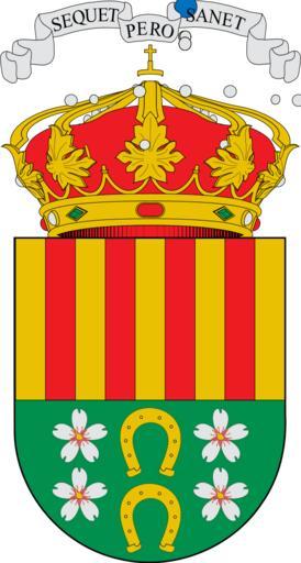 | Keywords: Escut de Sant Vicent del Raspeig.svg Sant Vicent del Raspeig Alacantí País Valencià Escut a la espanyola; el cap d'or amb els quatre pals de gules que és d'Aragó i de sinople amb dos ferradures d'or en pal acompanyades de dos i dos flors d'ametler en el seu color El tot surmontat amb corona reial tancada i sobre ella una cinta d'argent amb el mot Sequet pero sanet Reglament d'Honors i Distincions de l'Ajuntament de Sant Vicent del Raspeig 12 de juny de 1974<ref>http //www raspeig es/pdfs/ordenanzasmunicipales/reglamentodehonores pdf Reglament d'Honors i Distincions de l'Ajuntament de Sant Vicent del Raspeig</ref> Cap ampliat fins la meitat seguint el model lineal oficial<ref>http //www raspeig es/images/escudo gif Model oficial de l'Ajuntament</ref> own Mutxamel 01-07-2010 References <references /> Coats of arms of Sant Vicent del Raspeig |