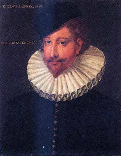 | Keywords: Esmé Stewart, 3rd Duke of Lennox KG (1579 – July 30, 1624) was the son of Esmé Stewart, 1st Duke of Lennox. He was a patron of the playwright Ben Jonson, who lived in his household for five years. He married Katherine Clifton, 2nd Baroness Clifton, in 1609. They had eleven children: * Elizabeth (1610-1674), married the 22nd Earl of Arundel. * James, later 4th Duke of Lennox (1612–1655) * Anne (1614-1646), married Archibald Douglas, Earl of Angus. * Henry, 8th Seigneur d'Aubigny (1616–1632) * Francis (1616–1617) * Frances (1617–1694), married the 2nd Earl of Portland. * Margaret (1618–1618), died young. * George, 9th Seigneur d'Aubigny (1618–1642) * Ludovic, 10th Seigneur d'Aubigny (1619–1665) * John (1621–1644) * Bernard (1623–1645) He died in 1624 and was interred, on 6 August 1624, in Westminster Abbey. Esmé Stewart, 3rd Duke of Lennox KG (1579 – July 30, 1624) was the son of Esmé Stewart, 1st Duke of Lennox. He was a patron of the playwright Ben Jonson, who lived in his household for five years. He married Katherine Clifton, 2nd Baroness Clifton, in 1609. They had eleven children: * Elizabeth (1610-1674), married the 22nd Earl of Arundel. * James, later 4th Duke of Lennox (1612–1655) * Anne (1614-1646), married Archibald Douglas, Earl of Angus. * Henry, 8th Seigneur d'Aubigny (1616–1632) * Francis (1616–1617) * Frances (1617–1694), married the 2nd Earl of Portland. * Margaret (1618–1618), died young. * George, 9th Seigneur d'Aubigny (1618–1642) * Ludovic, 10th Seigneur d'Aubigny (1619–1665) * John (1621–1644) * Bernard (1623–1645) He died in 1624 and was interred, on 6 August 1624, in Westminster Abbey. |