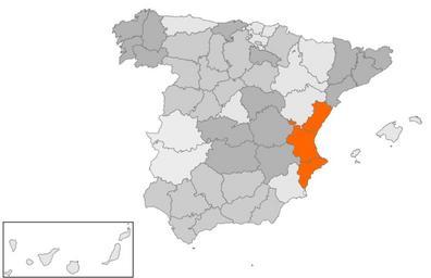 Keywords: España CCAA provincias gris naranja C.Valenciana.svg Localización de la Comunidad Valencia respecto a España Own Espanish AlB Locator maps of the Land of Valencia